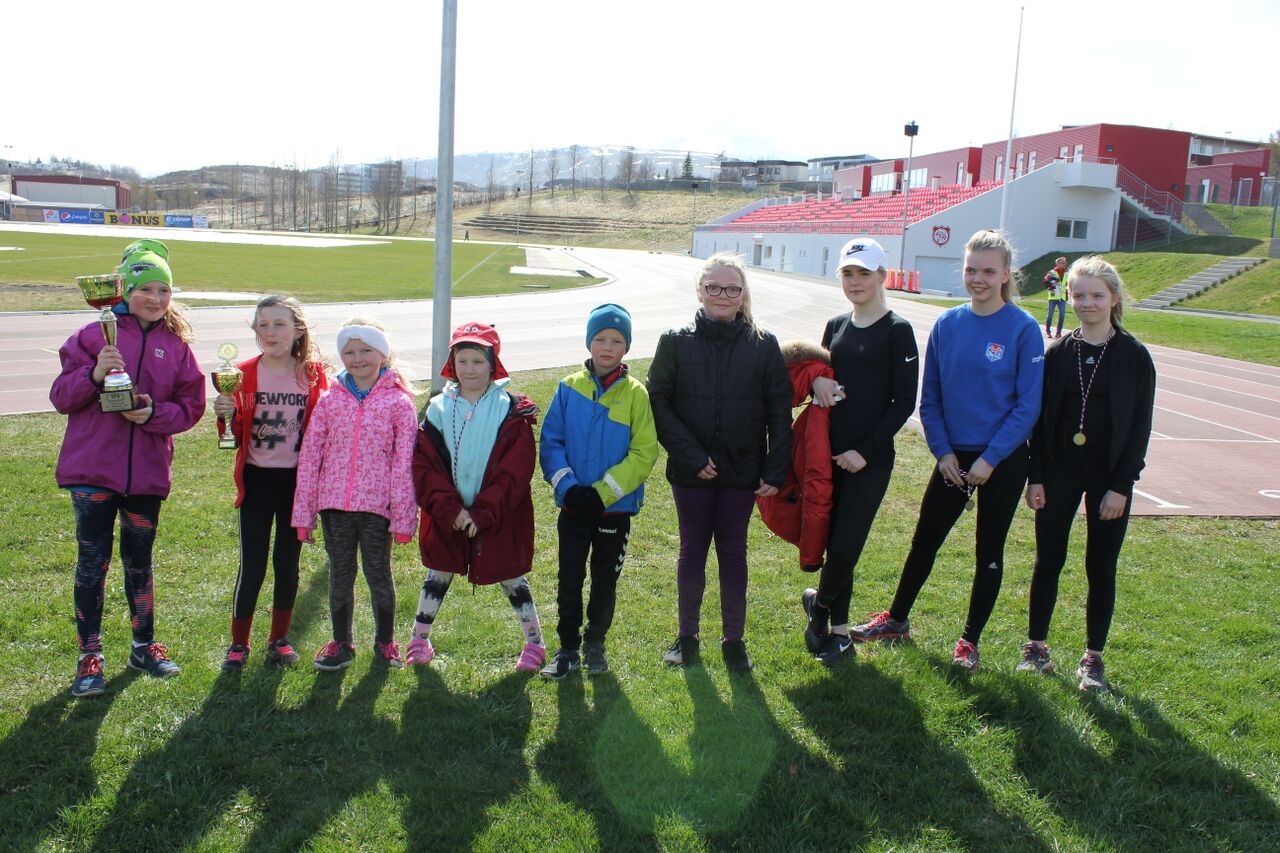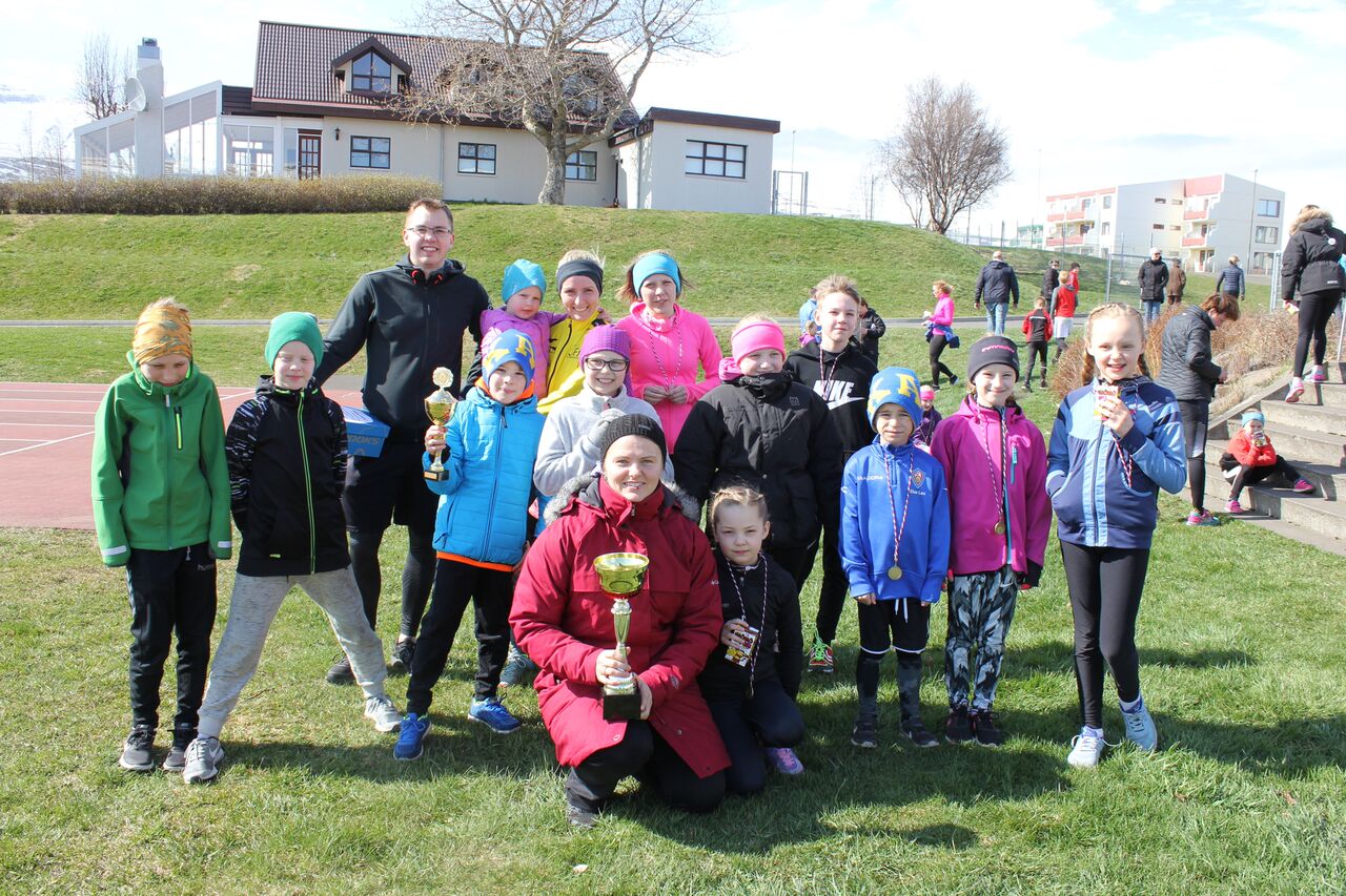 Krakkar og kennarar Naustaskóla fagna sigri.